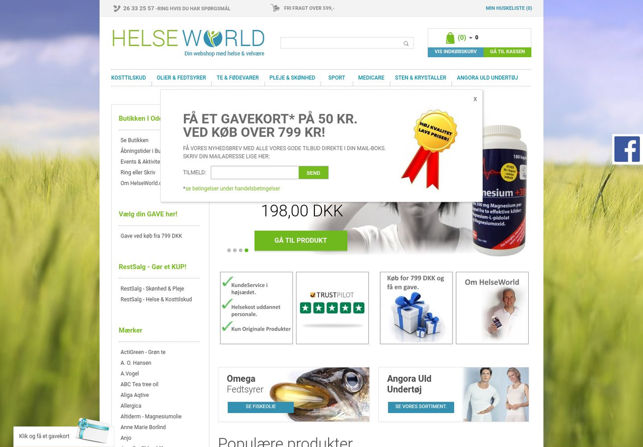 Helseworld.dk er din helsebutik på nettet vi har alt i kosttilskud, vitaminer, helsekost, teer og ikke mindst personlig pleje. Du får hos os den bedste service med hurtig levering, information omkring din bestilling og levering af denne, derudover er vi materialist uddannet og vi vil meget gerne give gode råd og vejledning, både pr. mail eller telefon. Vi er en helt igennem dansk virksomhed, og i shoppen har vi alle de velkendte produkt mærker og brands, så du er sikker på den høje kvalitet, og dette er til nogle af Danmarks bedste priser, vi gør en dyd i at få købt korrekt ind så vi kan tilbyde dig fantastiske produkter til billige penge.