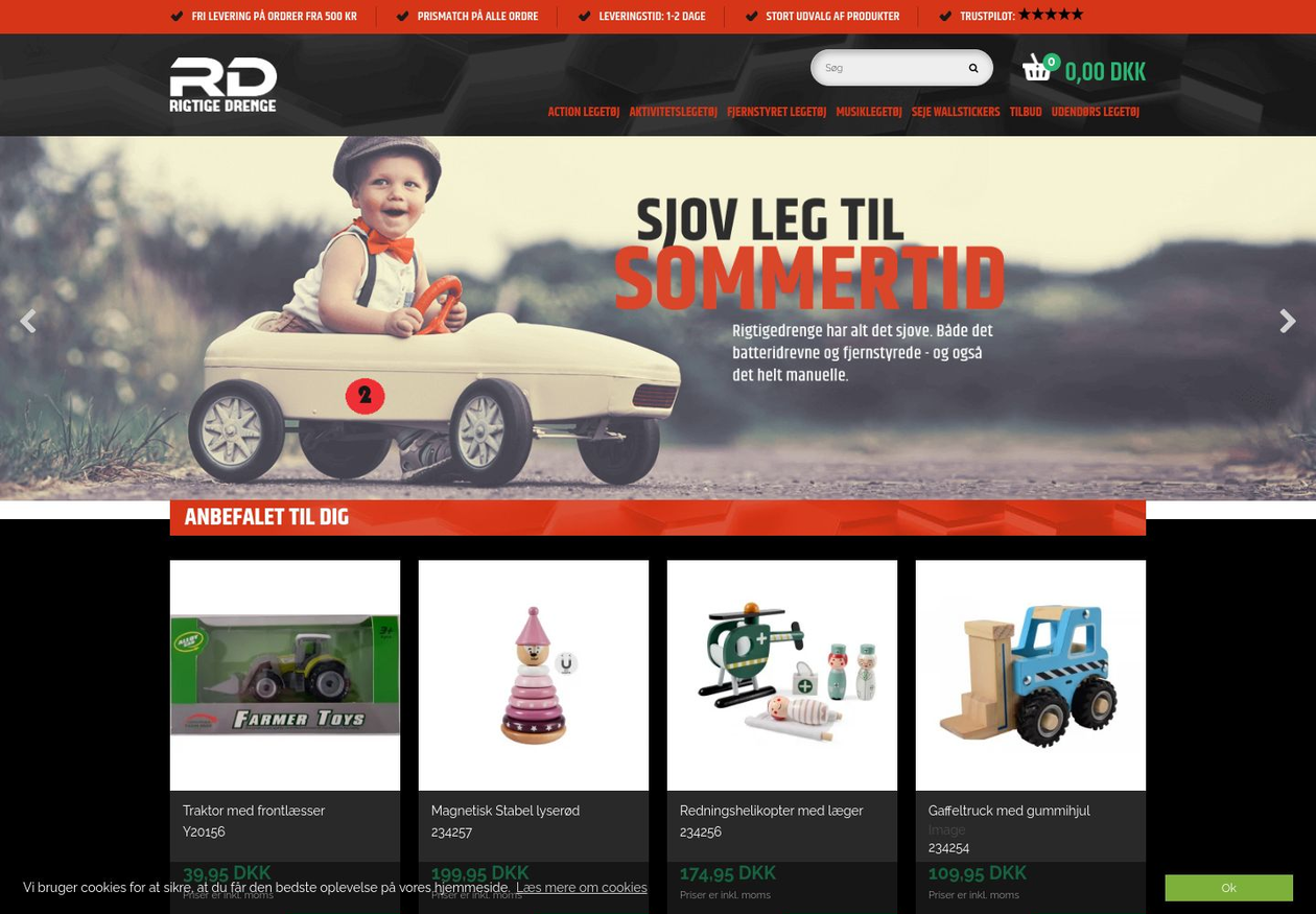 Rigtigedrenge.dk er en hjemmeside der sælger legetøj til drenge. På webshoppen vil der være noget for drenge i alle aldre og der er et stort udvalg af kendte mærker. Derudover er der et stort udvalg af trælegetøj og altid det sundeste valg for både barn og miljø. Rigtigedrenge.dk tilbyder altid hurtig levering og prismatch på alle produkter og har fri fra på alle ordrer over 500 kr.
