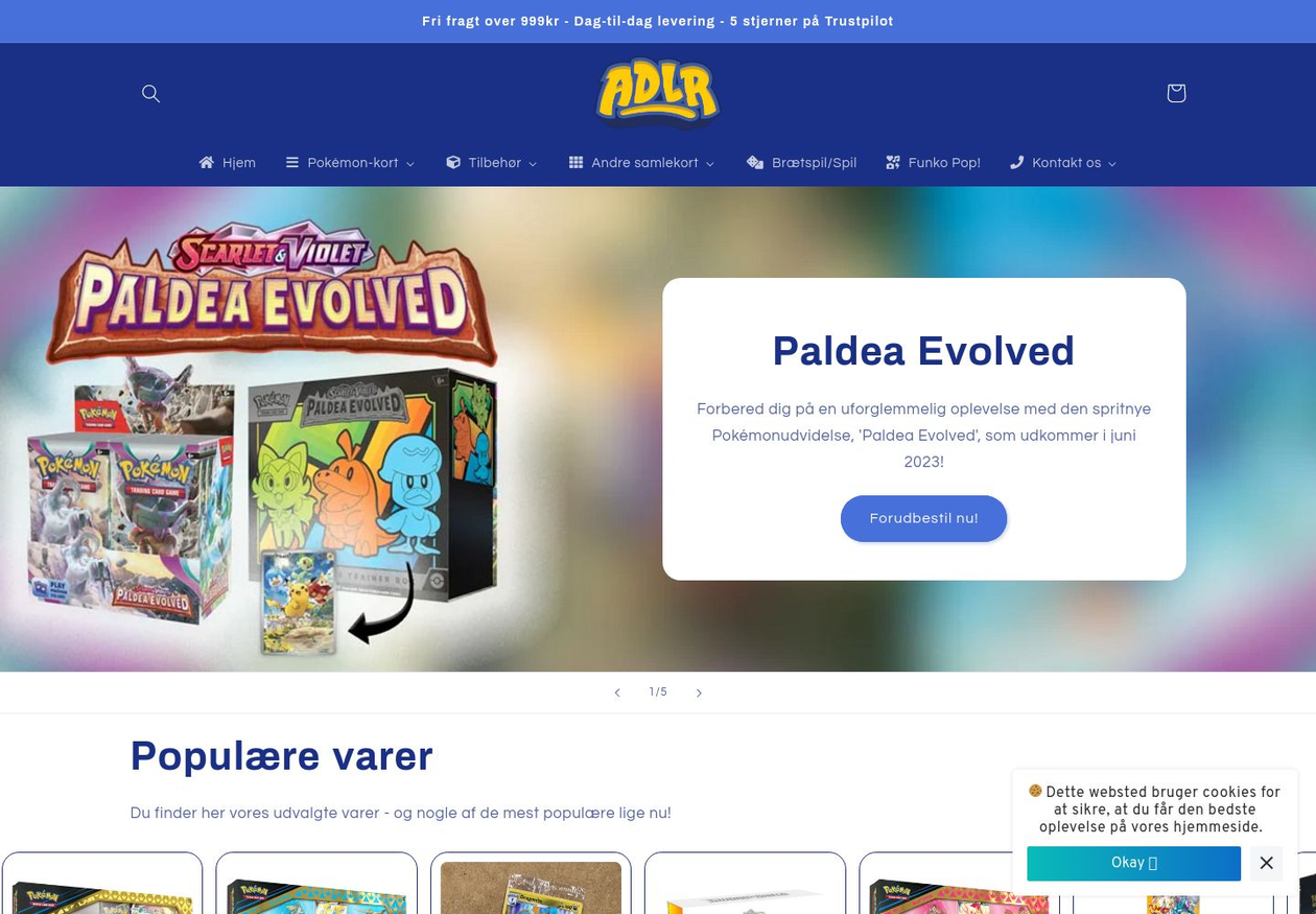 Lille dansk webshop, med hovedsæde og lager i Esbjerg, og et bredt Pokemon-udvalg, som er blandt de billigste i Danmark! Andre kortspil på lager er bl.a. Yu-Gi-Oh og MetaZoo. Vi har også et stort udvalg af diverse tilbehør til samlekort, herunder plastiklommer/sleeves, samlemapper, toploaders og andet beskyttelse. – Udover samlekort tilbyder vi også et stort udvalg af Funko Pop, Puslespil, Nintendo, vinyl-figurer, samt byggeklodser fra Mega Construx og Nanoblock. Dag-til-dag levering eller lokal afhentning.