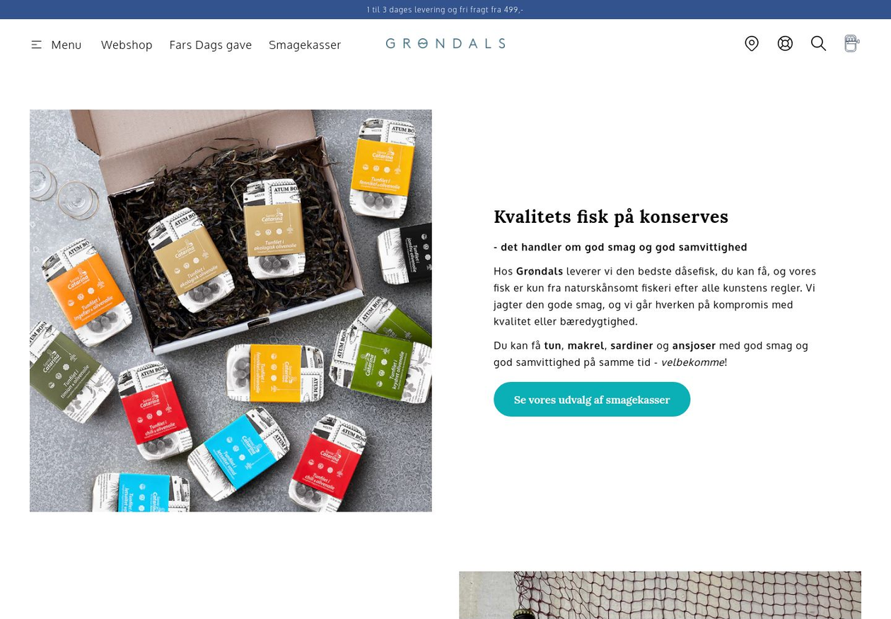 Grøndals er Danmarks største webshop af fiskekonserves, med flere fiskearter samt et hav af smagsvarianter på produkterne. Når du åbner et konservesprodukt fra Grondals.dk, kan du være sikker på, at du får en smagsoplevelse, som du aldrig har fået den før – fra en konservesdåse.