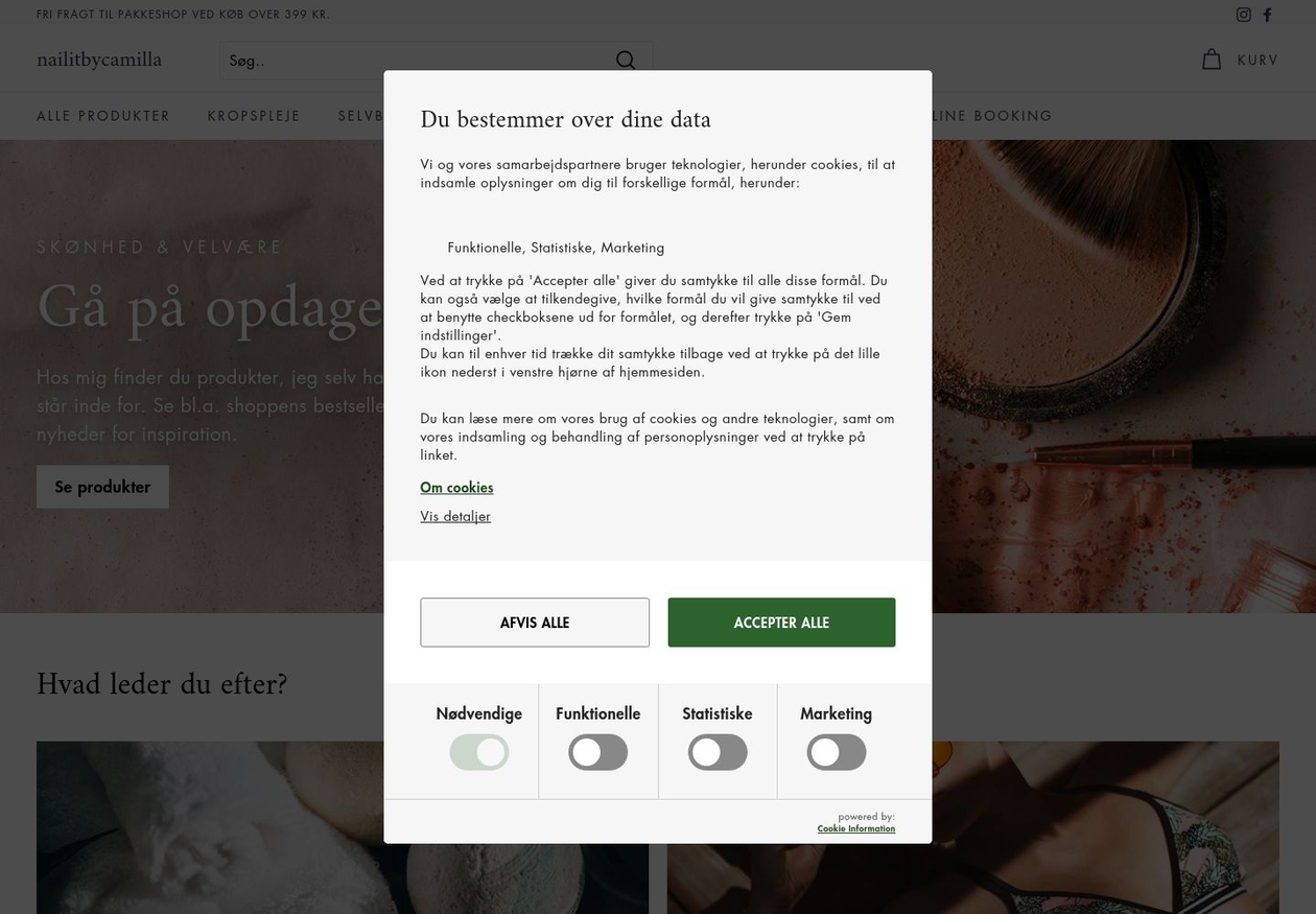 Nail It By Camilla er en webshop fyldt med skønhedsprodukter. Du finder et bredt udvalg af body lotions, vippeserums, konjac svampe og meget mere. Fælles for alle produkterne er at jeg har prøvet dem alle, så hvis der er spørgsmål til produkterne, kan jeg tale fra egen erfaring og rådgive dig til hvilke produkter passer bedst til din hudtype. Der er skarpe krav til de forhandlende produkter, da kvaliteten af alle produkter skal være høj og der går jeg ikke på kompromis. Jeg har desuden også en neglesalon, hvor du kan booke tid og få lavet professionelle negle, om det er shellac eller gel.