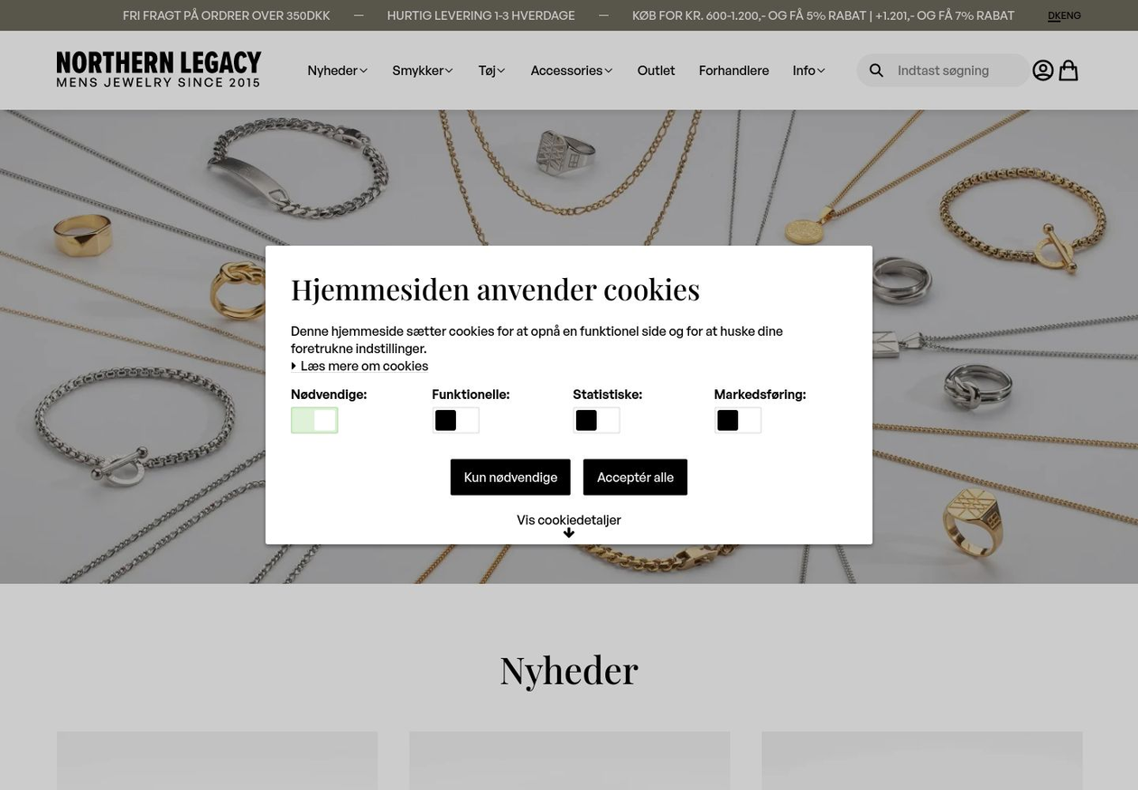 Northern Legacy producerer og sælger håndlavet herresmykker. I udvalget af herresmykker finder du bl.a. armbånd til mænd, halskæder til mænd og ringe til mænd. Når du handler hos Northern Legacy, får du lækre fordele som gratis forsendelse og 365 dages fuld returret. Langt størstedelen af produkterne er lavet i stål og fås i et flot og skinnende look i enten guld eller sølv. Prisniveauet ligger også i et leje, hvor de fleste kan være med. Uanset om du er studerende med knap så mange penge for hånden eller du er i et arbejde med en fast indtægt, er herresmykker fra Northern Legacy et smart tilvalg til din garderobe.