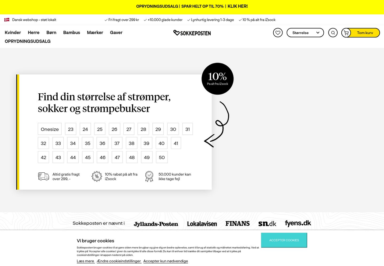 Vi er glade for dit besøg her på SokkePosten, og vil gerne byde dig velkommen. Det har fra starten været tanken at skabe en webshop hvor du finder de strømper du søger. Vi har i vores udvalg prøvet at tage højde for have de ting på lager som de fleste bruger i deres hverdag. Vi har også et udvalg der kan finde anvendelse når det kommer til mere festligt lag. Du er altid meget velkommen til at sende os en kommentar eller ønsker du ikke finder på shoppe. Det gør du let ved at sende os en mail på kundeservice@sokkeposten.dk Vi prøver altid at svare samme dag, men det sker at der er meget mail der svares på. Så ha gerne lidt tålmodighed, vi kommer også til din mail.