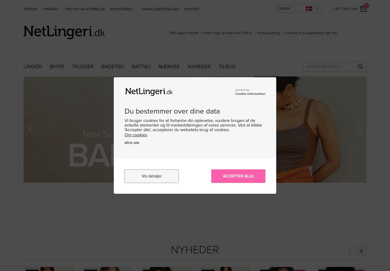 Netlingeri sælger undertøj til kvinder fra alle de kendte mærker. Her finder du f.eks. PrimaDonna som er til den større barm, alt det lækre undertøj fra Triumph og de kendte trusser fra Sloggi. Her er der BH’er helt ned fra de helt små størrelser til de store skål størrelser, så vi har sortimentet til at komme helt rundt om din barm. Du finder også shapewear, sports BH’er, bomuldundertøj og meget mere undertøj online til de bedste priser. Få 10% rabat på din første ordre hvis du skriver dig op til vores nyhedsbrev så sender vi din ordre indenfor 1-2 hverdage.